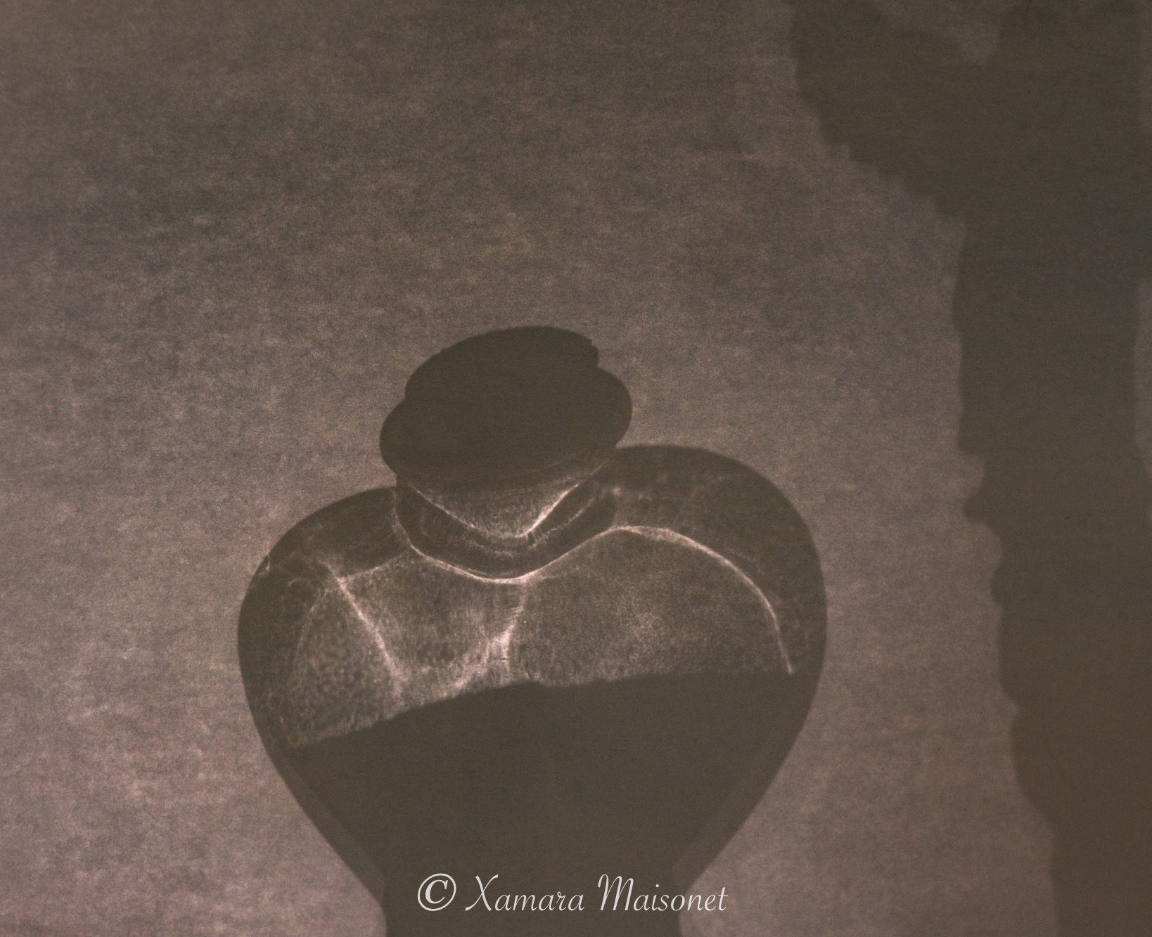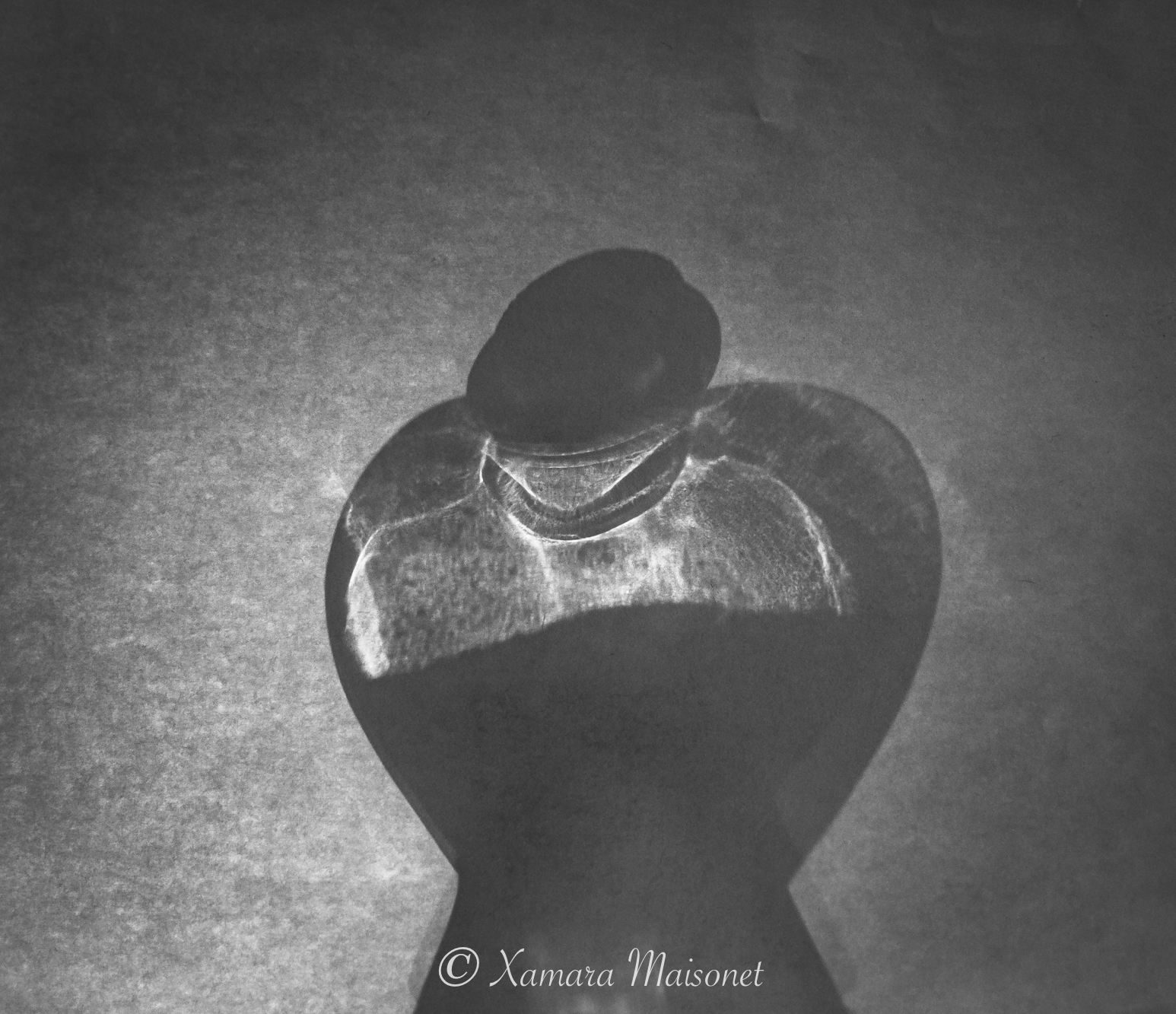 A man with a hat and walking with his hands on his back on an empty alley. But still, he is surrounded by light or maybe is the light from within. Might be something following him but if he knows where his light comes from, he will be ok. I called this “Walking in the Shadows”, still there is light.