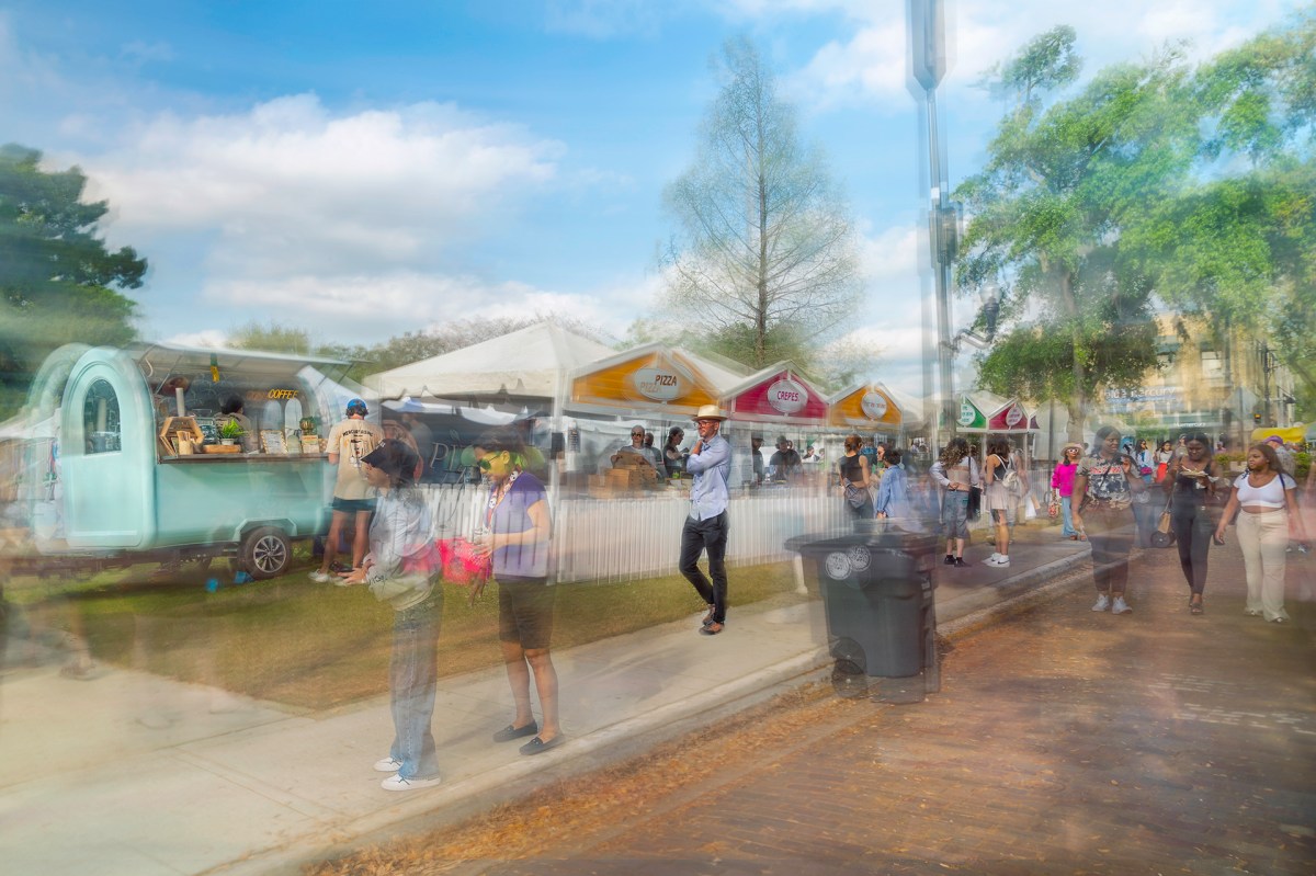 I took this picture in Winter Park, Florida during a Fine Art Fair activity. We went to see fine art and we got hungry after a few hours of walking and enjoying the creativity of great artists. Thank God there is always good food at fairs, when I saw the colorful stands and many people walking I thought it was a great moment to record and remember. We humans love to have a good time, not everyone likes fine art fairs, but everyone loves to eat and have a good time outdoors or other types of fairs and fun activities.